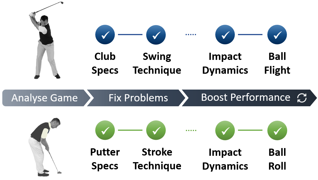 Frequent analysis of this top-line data, helps you and your Pro, identify specific areas of your game that are restricting your performance. You may then work on addressing performance problems independently, or utilise the services of your Golf Professional.